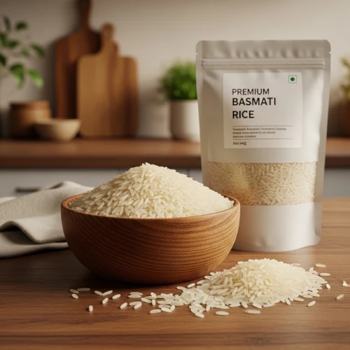 Premium Indian rice varieties including Basmati and Non-Basmati, processed and packed for global export standards.